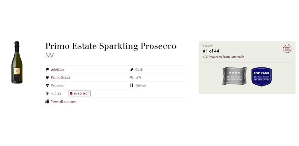 "A frenetic mousse and bead upon pouring. Quite complex aromas of stone fruit, baked apple, orange rind and talc. Soft and creamy on the palate, with a lovely drive of stone fruit and apple flavours. The length is impressive as is the texture. A smart prosecco, 92 points."
