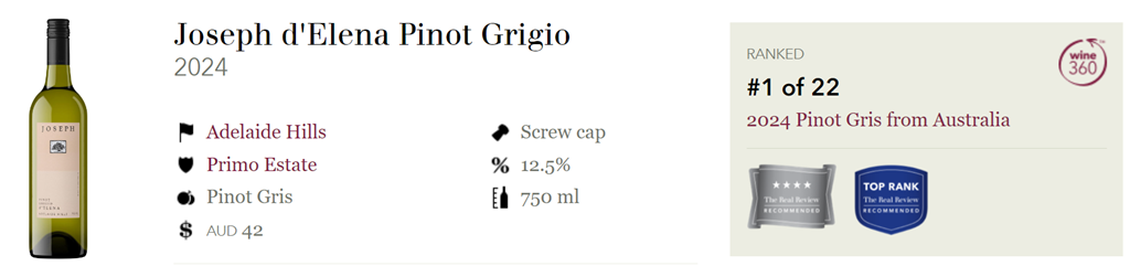 JOSEPH Pinot Grigio d'Elena - 95 points