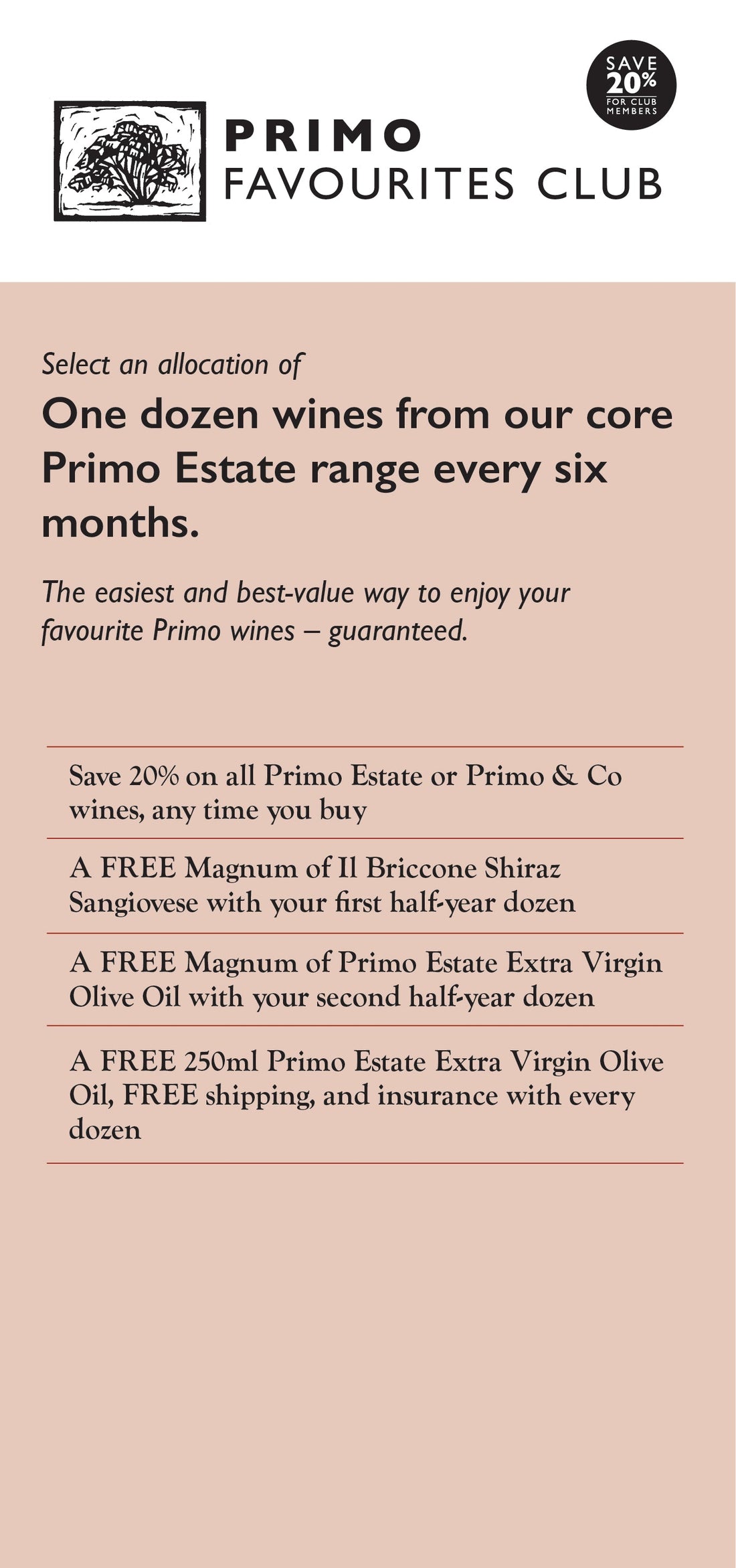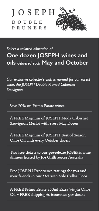 Each club has a different delivery schedule. Primo Favourites Club Members receive packs in March and September; JOSEPH Double Pruners receive packs in March and October, and Virgina Vineyards Club Members can choose to receive packs in either February, June or October.