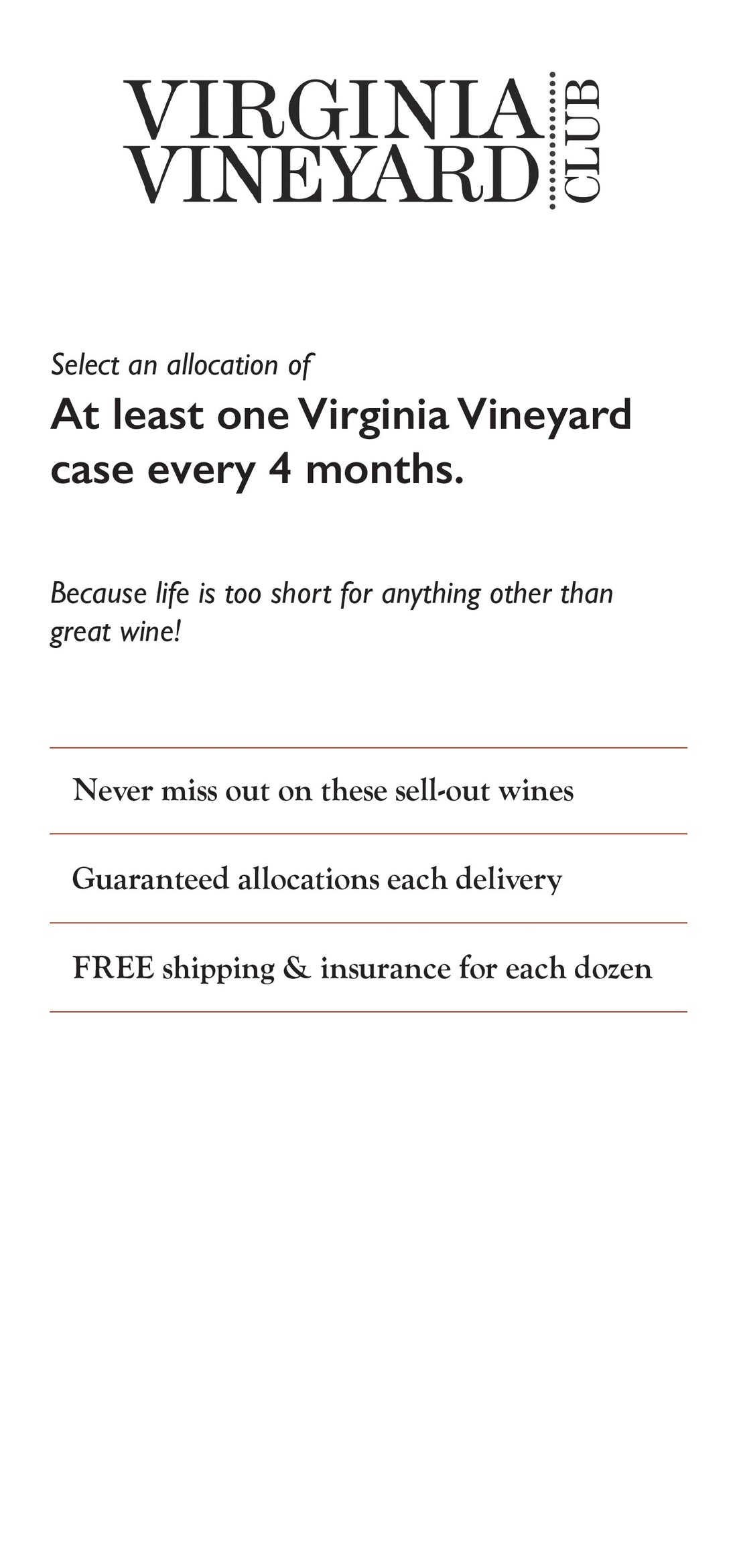 First access to our sell-out wines, bonus magnums, free shipping, exclusive events + more.